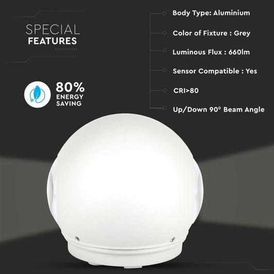 6W LED Stenska Svetilka Sivo Ohišje IP65 4000K