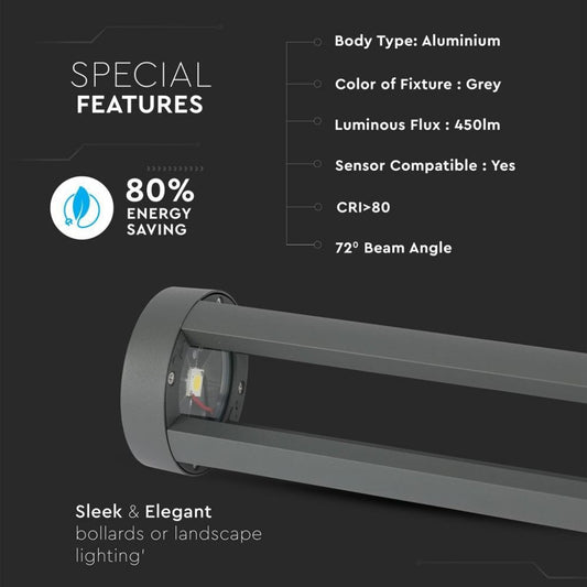 10W LED Outdoor Floor Lamp 80cm 450lm 3000K Gray