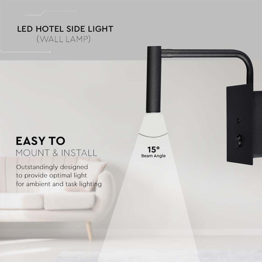 3W LED Night Wall Lamp Black 3000K + USB Input