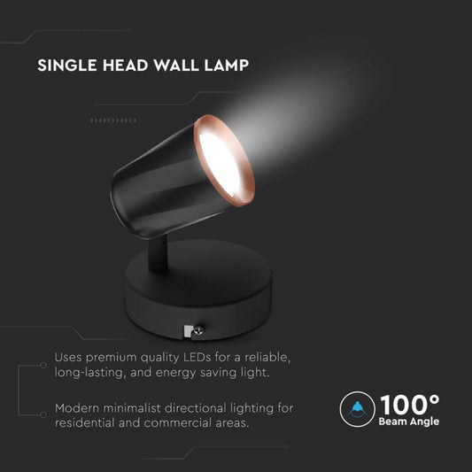 5W LED Stenska Svetilka Črna-Rose 3000K