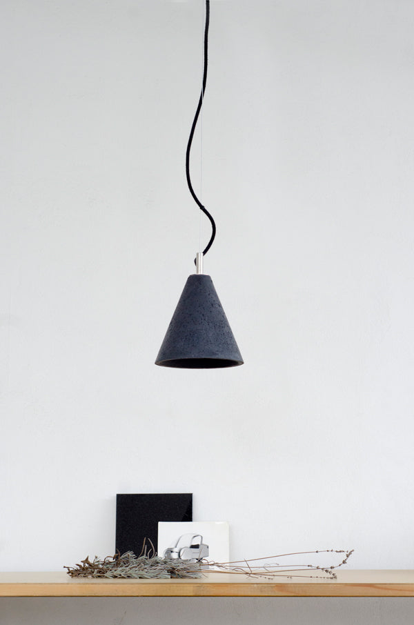 Betonska viseča svetilka KOBE 1. Ročno ulit senčnik v trinajstih barvah betona.