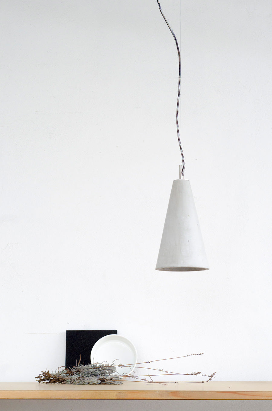 Betonska viseča svetilka KOBE 2. Ročno ulit senčnik v barvi po vaši izbiri.